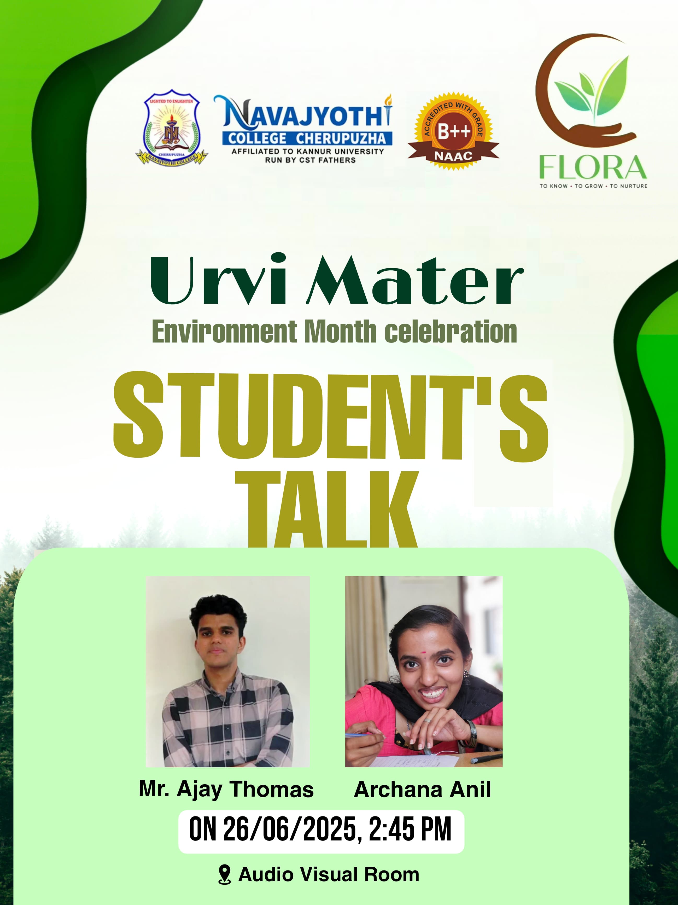പരിസ്ഥിതി മാസാചരണത്തോടനുബന്ധിച്ചു നവജ്യോതി കോളേജ് നേച്ചർ ക്ലബ്- ഫ്ലോറ സ്റ്റുഡന്റ് ടോക്ക് സംഘടിപ്പിച്ചു .