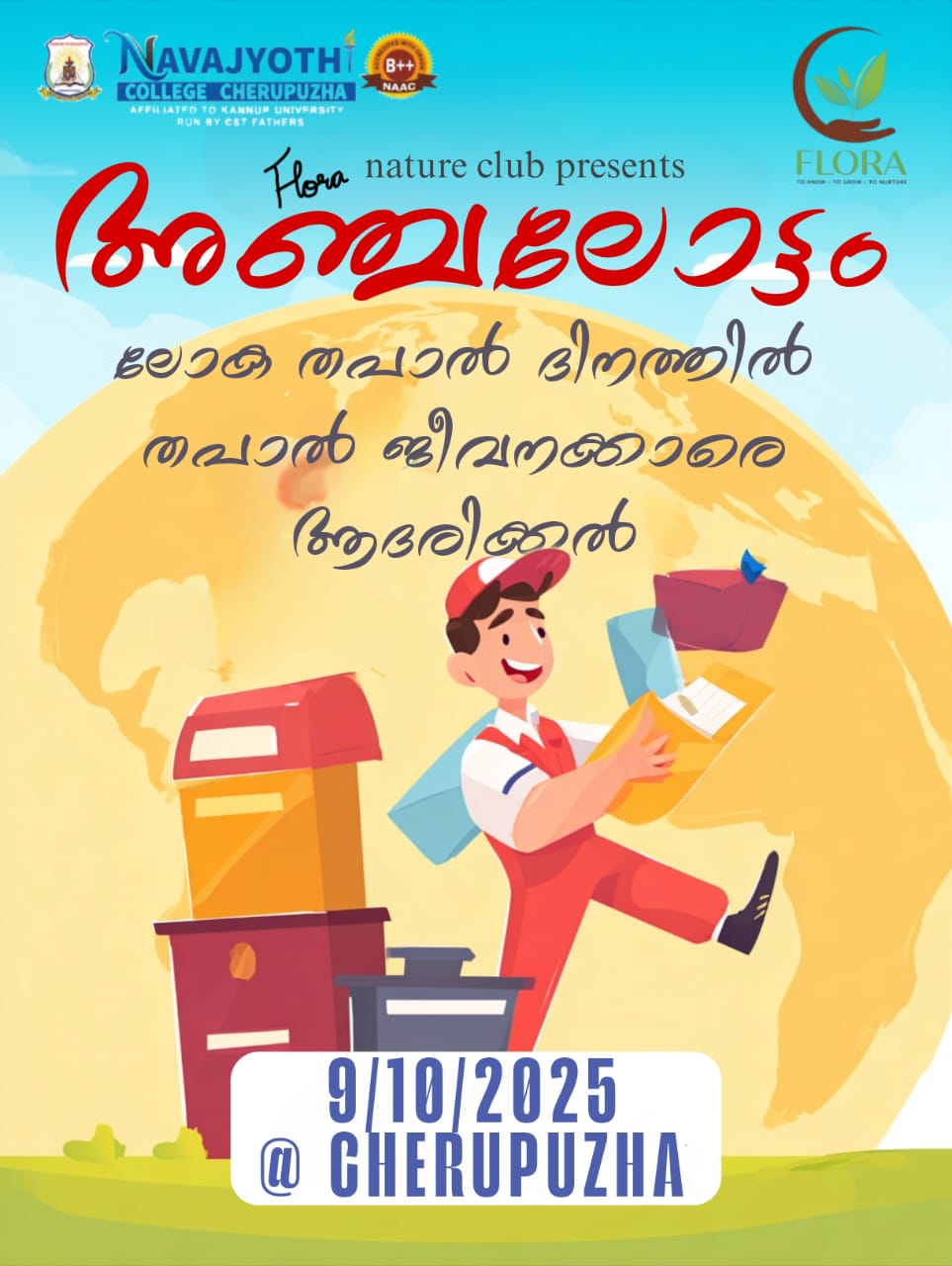 ഒക്ടോബർ 9 - ലോക തപാൽ ദിനത്തോടനുബന്ധിച്ചു നവജ്യോതി കോളേജ് ഫ്ലോറ നേച്ചർ ക്ലബ്ബ് അംഗങ്ങൾ ചെറുപുഴ പോസ്റ്റ് ഓഫീസിലെ ജീവനക്കാരെ ആദരിച്ചു .