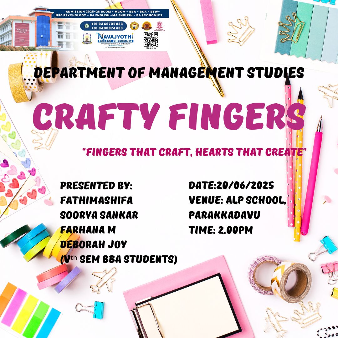 നവജ്യോതി കോളേജ് ബി.ബി.എ ഡിപ്പാർട്ടമെന്റിലെ വിദ്യാർത്ഥി കൾ എ. എൽ. പി. സ്കൂൾ പാറക്കടവിലെ സ്കൂൾ കുട്ടികൾക്ക് വേണ്ടി ക്രാഫ്റ്റ് മേക്കിങ് ക്ലാസ് സംഘടിപ്പിച്ചു.