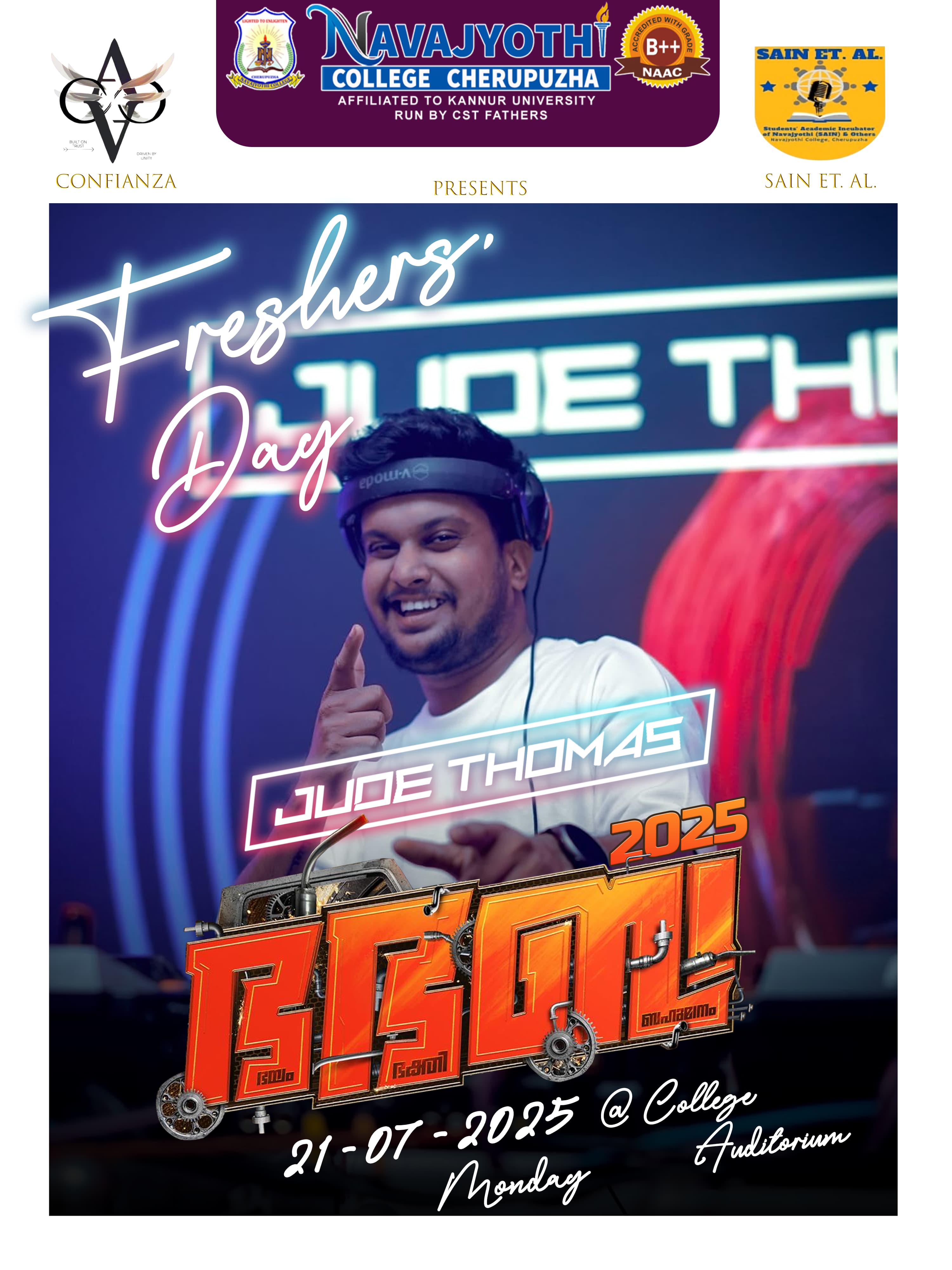 കോളേജ് സ്റ്റുഡന്റസ് യൂണിയനും സൈൻ അറ്റ് ആൾ ചേർന്ന് ഈ വർഷത്തെ ഫ്രഷേഴ്സ് ഡേ ആഘോഷിച്ചു . തുടർന്ന് വിദ്യാർത്ഥികളുടെ വിവിധ പരിപാടികളും ഉച്ചയ്ക്ക് ശേഷം ജൂഡ് തോമസ് നയിച്ച മ്യൂസിക്കൽ എന്റർടൈൻമെന്റ് പരിപാടിയും സംഘടിപ്പിച്ചു.