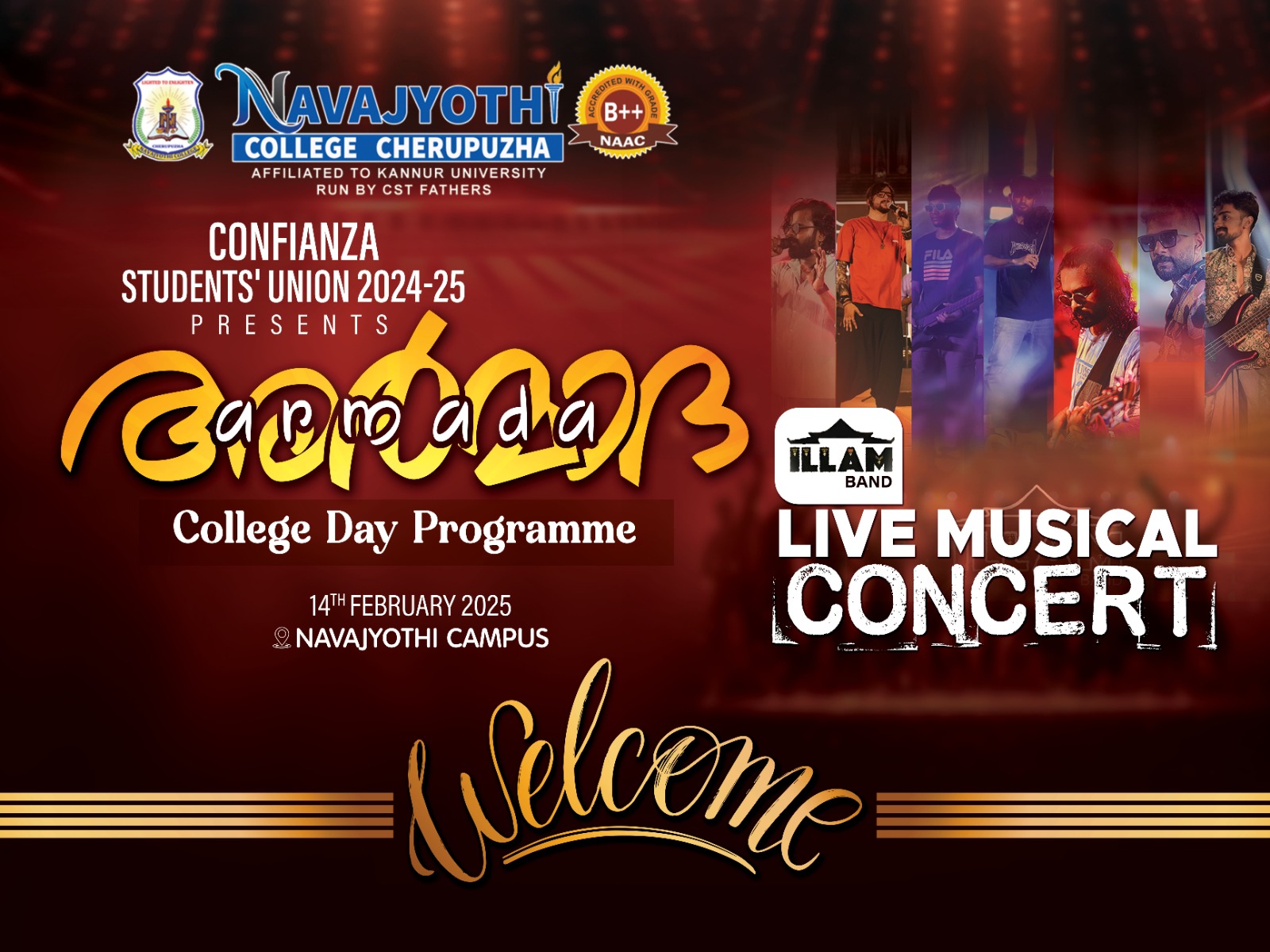 നവജ്യോതി കോളേജും CONFIANZA സ്റ്റുഡന്റസ് യൂണിയനും സംയുക്തമായി നടത്തിയ 'ARMADA 2K25' കോളേജ് ഡേ പ്രോഗ്രാം ' ഫെബ്രുവരി 14,2025നു വൈകുന്നേരം സിനിമ- നാടക സംവിധായകൻ ശ്രീ. ഗോപി കുറ്റിക്കോൽ ഉദ്ഘാടനം നിർവ്വഹിച്ചു. തുടർന്ന് വിദ്യാർത്ഥികളുടെയും അധ്യാപകരുടെയും കലാപരിപാടികൾക്ക് ശേഷം സൗത്ത് ഇന്ത്യയിലെ തന്നെ പ്രശസ്തമായ 'ILLAM' ബാൻഡിന്റെ Live Musical Concert ഉം സംഘടിപ്പിച്ചു .