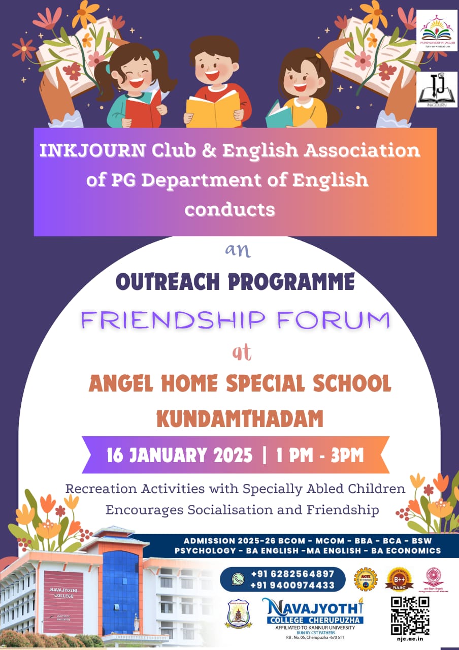 ഇംഗ്ലീഷ് ഡിപ്പാർട്മെന്റും ഇങ്ക്ജേൺ ക്ലബ്ബും സംയുക്തമായി കുണ്ടംതടം ഏയ്ജെൽ ഹോം സ്പെഷ്യൽ സ്കൂളിലെ വിദ്യാർത്ഥികൾക്കായി ഔട്ട്റീച് പ്രോഗ്രാം സംഘടിപ്പിച്ചു .